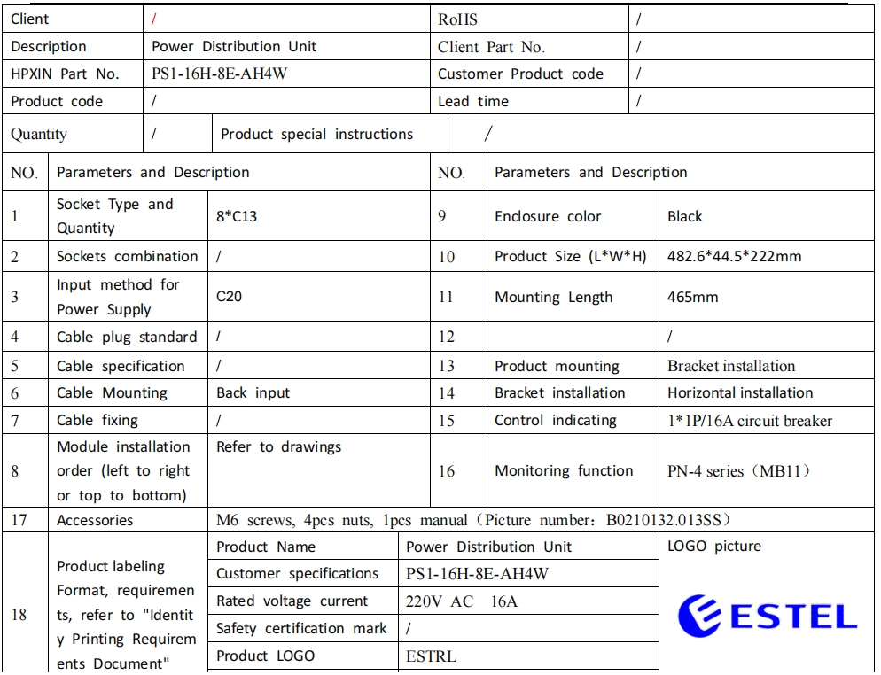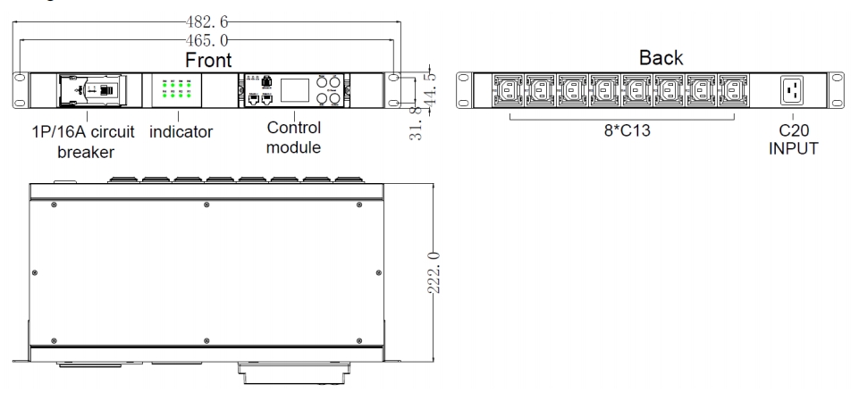 Intelligent Power Distribution Unit Outlet Breaking Capacity 16A 250VAC RS-485 port, support cascade connection horizontal installation customized protocol